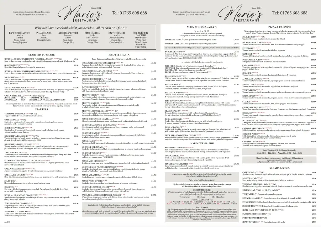 Bring the kids along too… we have a dedicated children’s menu available all evening with some Italian classics and a few British staples.