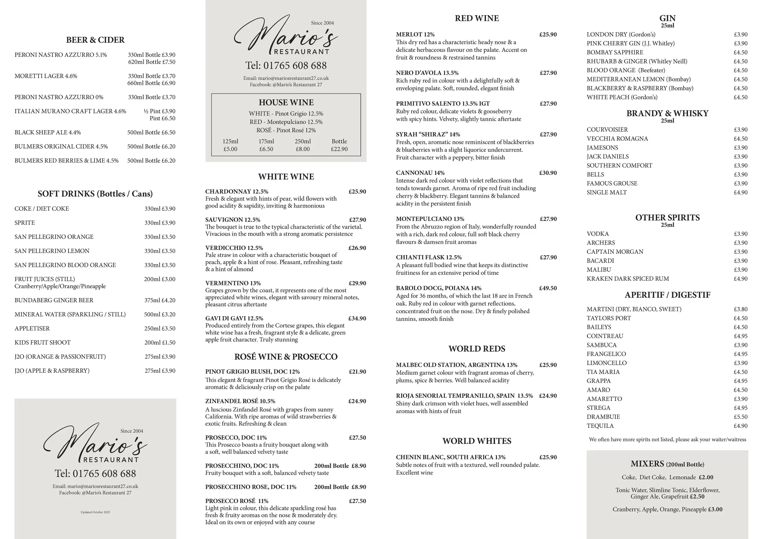 We offer a wide variety of wines, beers, spirits and soft drinks.