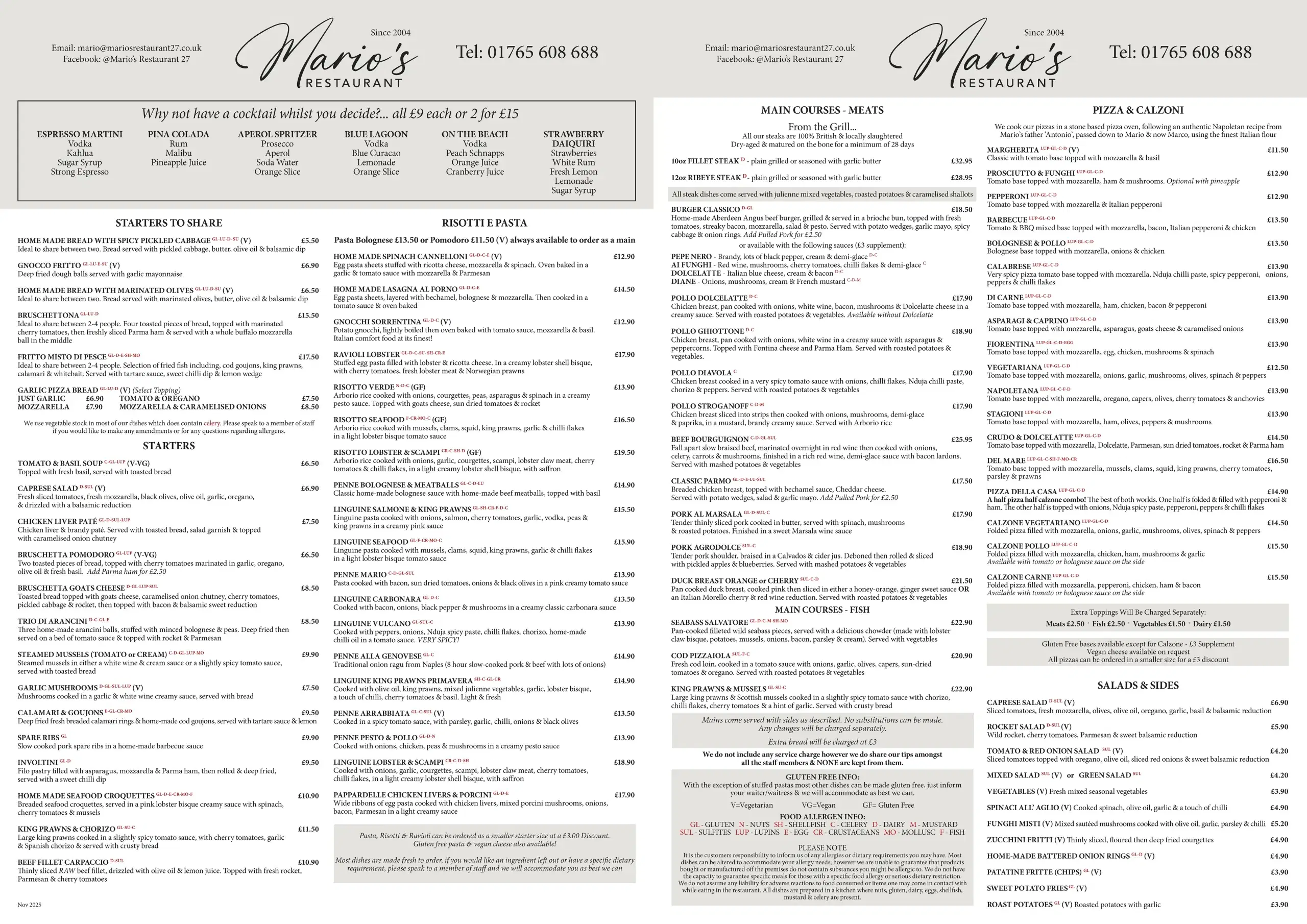 We offer an extensive A la Carte Menu full of Italian favourites which is complemented by our Specials Board which is influenced by the seasons.